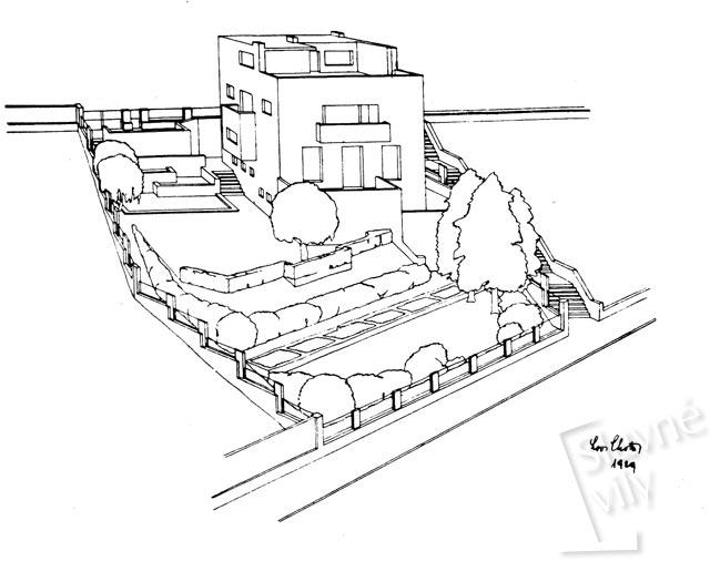 Jedna z nejslavnějších památek moderní architektury vyrůstá ze sevření rohového pozemku, skloněného k severu.