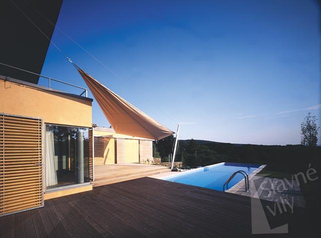 Architekt Línek (nar. 1943) plnil úkol postavit přízemní objekt a navázat určitým způsobem na předchozí stavbu. Na tomto pozemku stával totiž hospodářský objekt s obvodovou zdí a uzavřeným dvorem. Novostavba zdařile kopíruje toto původní uspořádání. Dům má dvě tváře: severní, sevřenou, obrannou a jihozápadní, otevřenou slunci a rodinnému životu. Uzavřené dvorky umožňují přístup světla. Nad ložnicovým křídlem je pultová střecha. Povrch rovných střech je oblázkový, doplněný zelenou střechou v místě terasy u pracovny a také při okrajích zastřešení hlavního obytného prostoru. Obvodový plášť je zděný, z cihel, povrchově upravený barevnou omítkou. Okna jsou hliníková, velké skleněné plochy do zahrady se otvírají odsouváním. Terasy v zahradě jsou hrazeny kamennými stěnami. Architekt Jan Línek závažnou část svého díla vytvořil ve spolupráci s architektem Vlado Miluničem. V odborné literatuře je jejich tvorba označována jako obnovená romantika funkcionalismu.